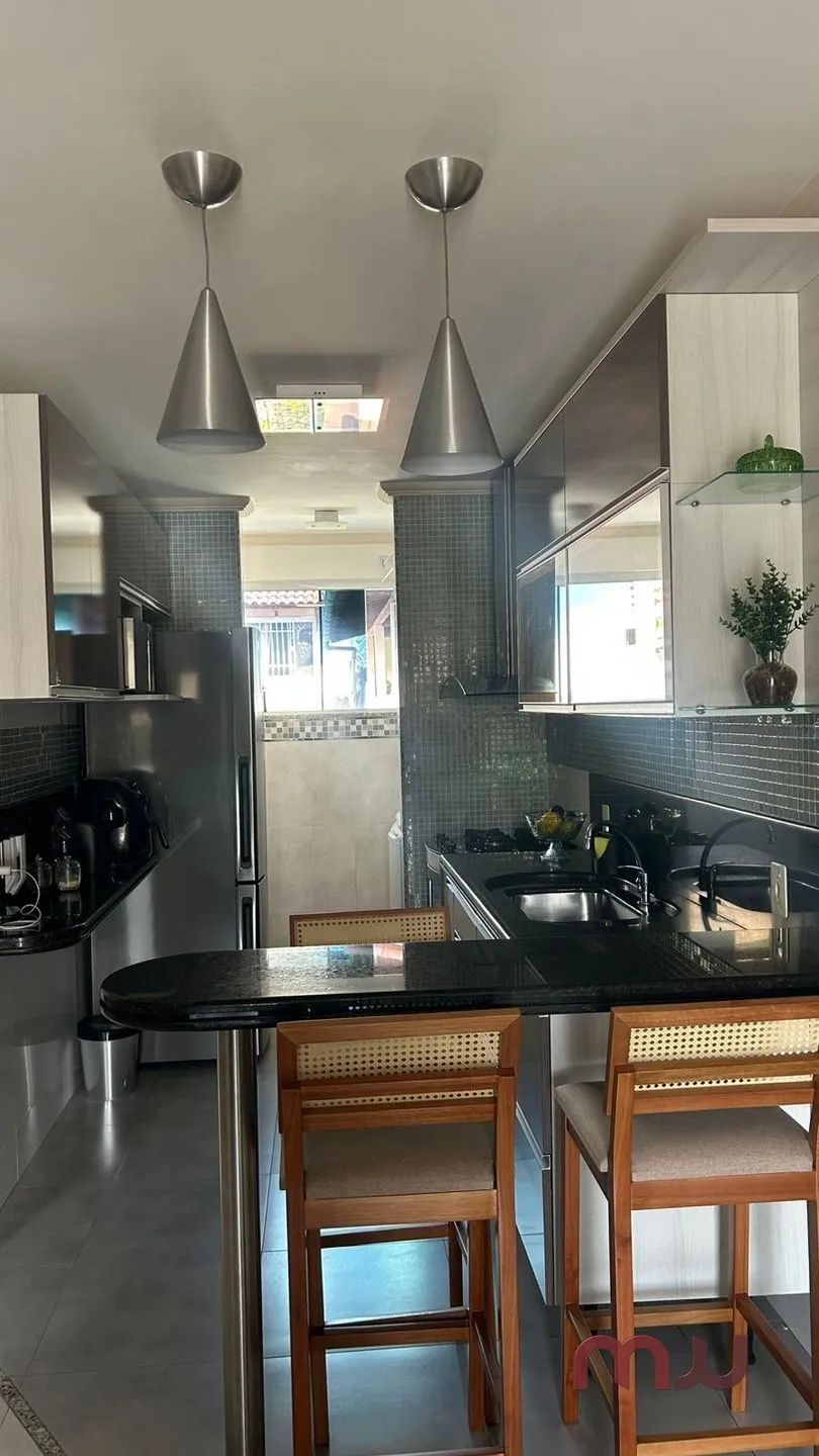 A cozinha conta com bancada em granito, e além de ser em conceito aberto, é totalmente equipada com armários planejados, geladeira inox, micro-ondas e coifa, além de área de serviço com máquina de lavar, tudo pensado para oferecer praticidade no dia a dia. 🤩